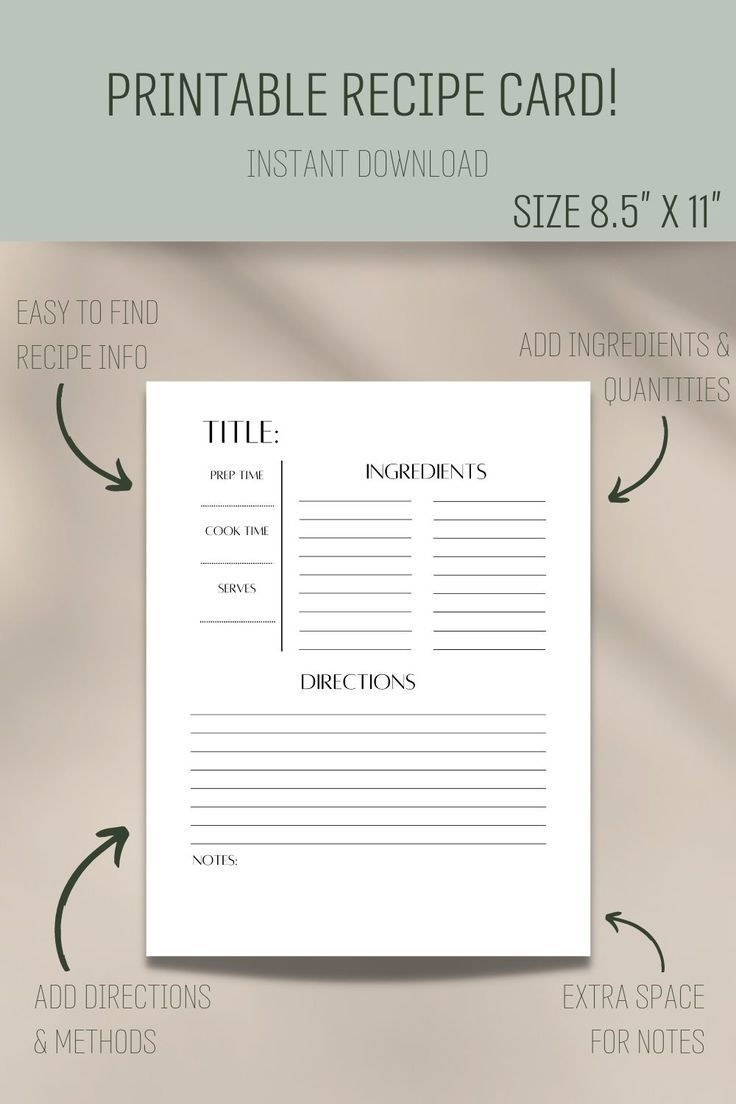 So what are you waiting for? Say goodbye to chaos in the kitchen and hello to deliciously organized recipes with the free printable recipe template 8.5 x 11. Happy cooking!